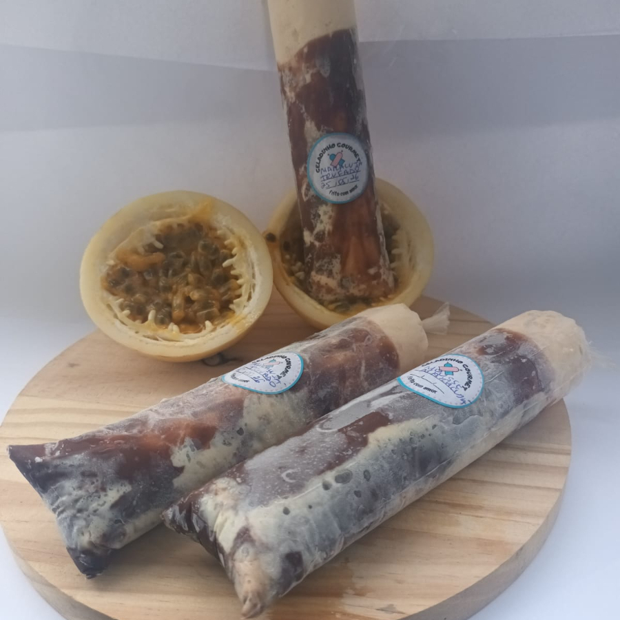 Geladinho gourmet perfeito de maracujá combinado com uma camada cremosa de chocolate que derrete na boca.