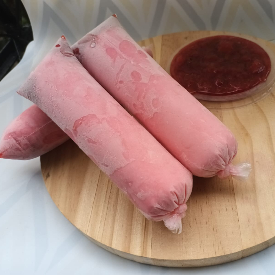 Suco natural da fruta com açúcar. Doce e refrescante na medida certa. Esse geladinho é pura cremosidade tropical! Leve, refrescante e perfeito pra quem ama aquele sabor natural que abraça o paladar.