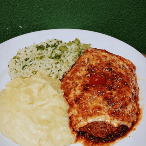 (Aprox. 400g) Um clássico que conquista pelo sabor e pela generosidade. Escolha a proteína da sua preferência e transforme ela em uma irresistível parmegiana: empanada, dourada e coberta com um molho de tomate encorpado que traz todo o aroma e a intensidade do prato. Por cima, uma camada de queijo derretido gratinado que envolve tudo e cria aquela textura cremosa e irresistível em cada garfada. Um prato marcante, suculento e cheio de personalidade — feito do jeito que você escolher.