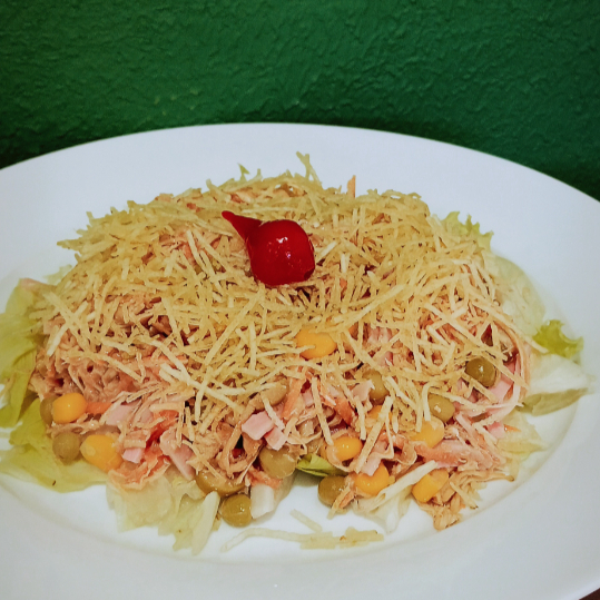 (Aprox. 350g) Um clássico cheio de sabor e personalidade. Frango desfiado suculento se mistura a ingredientes frescos, criando uma combinação leve e irresistível. A cremosidade equilibrada de um molho especialmente feito pela nossa coinha envolve cada pedacinho, enquanto o toque refrescante dos vegetais traz leveza e cor ao prato. Finalizado com uma crocância especial da batata palha que transforma cada garfada em uma experiência completa. Refrescante, saboroso e perfeito para quem ama tradição com muito sabor.
