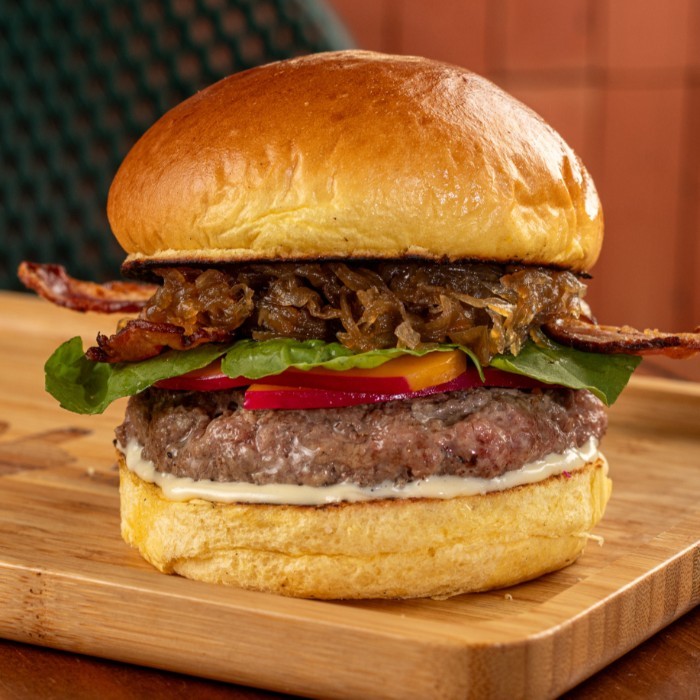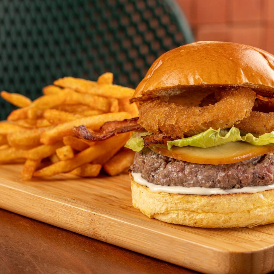 O sabor mora aqui: pão brioche, provolone derretido, bacon, alface e aioli da casa. Os anéis de cebola empanados selam o negócio. [os burguers tradicionais do varanda possuem 160g in natura] [as imagens são meramente ilustrativas]