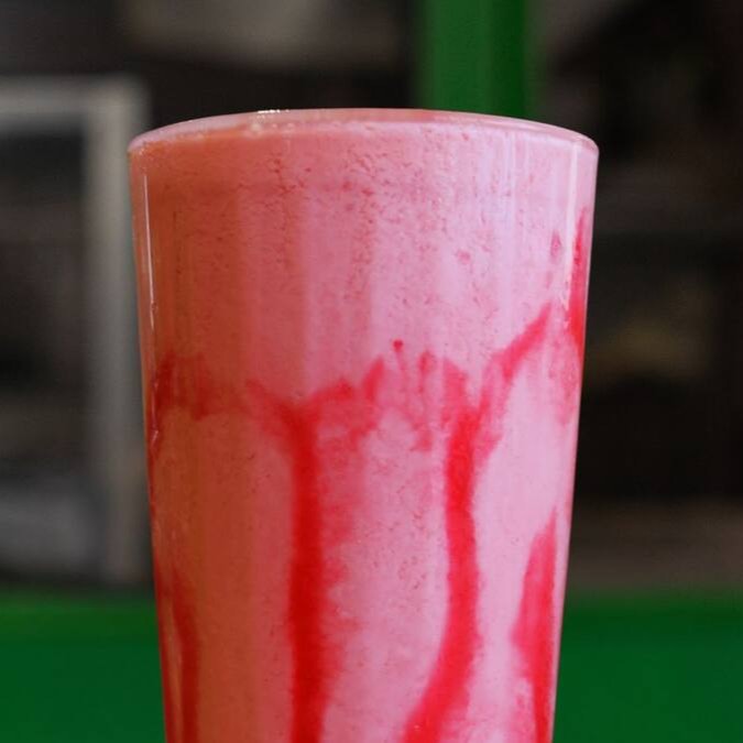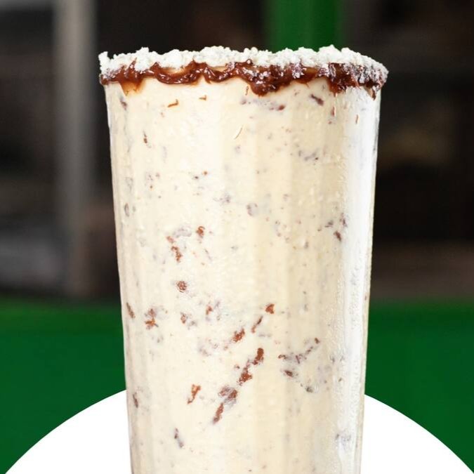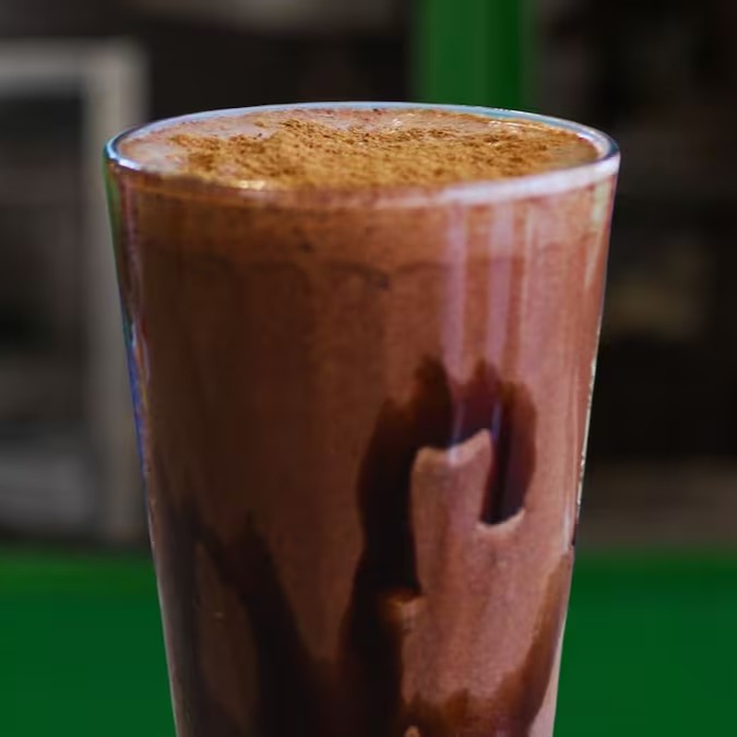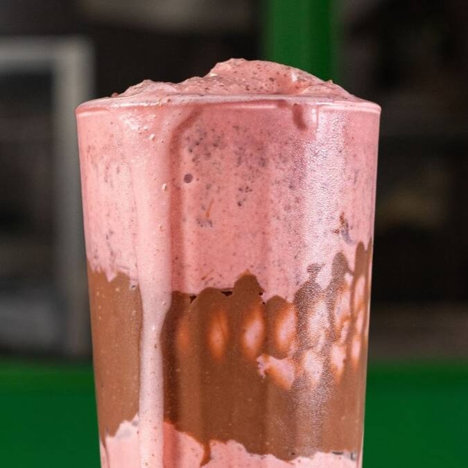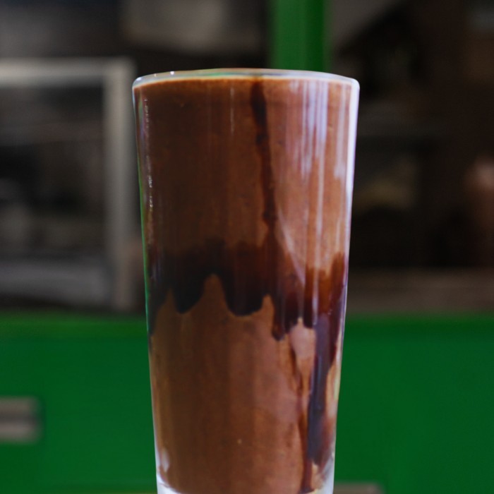 Sorvete de chocolate ou creme batido com leite em pó e creme de avelã.