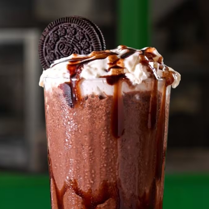 Sorvete de chocolate ou creme com biscoito Oreo.