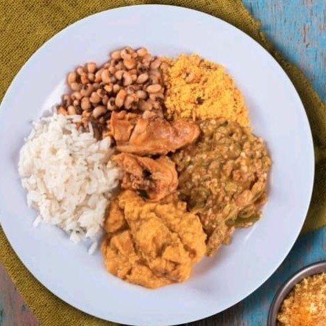 Vatapá,caruru, feijão fradinho, arroz, Xinxim de galinha.