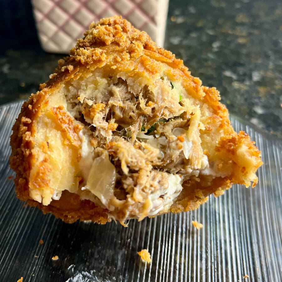 Delícia em dose dupla!!! Duas das nossas deliciosas coxinhas de Costela com Cream Cheese! Elas são empanadas na farinha panko, tornando-as extremamente crocantes e irresistíveis!!!