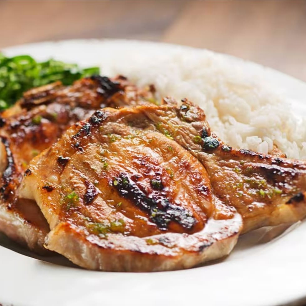 Costela de porco assada, suculenta e saborosa, acompanhada de arroz, macarrão, feijão e salada. Uma marmita completa e irresistível para o seu almoço!