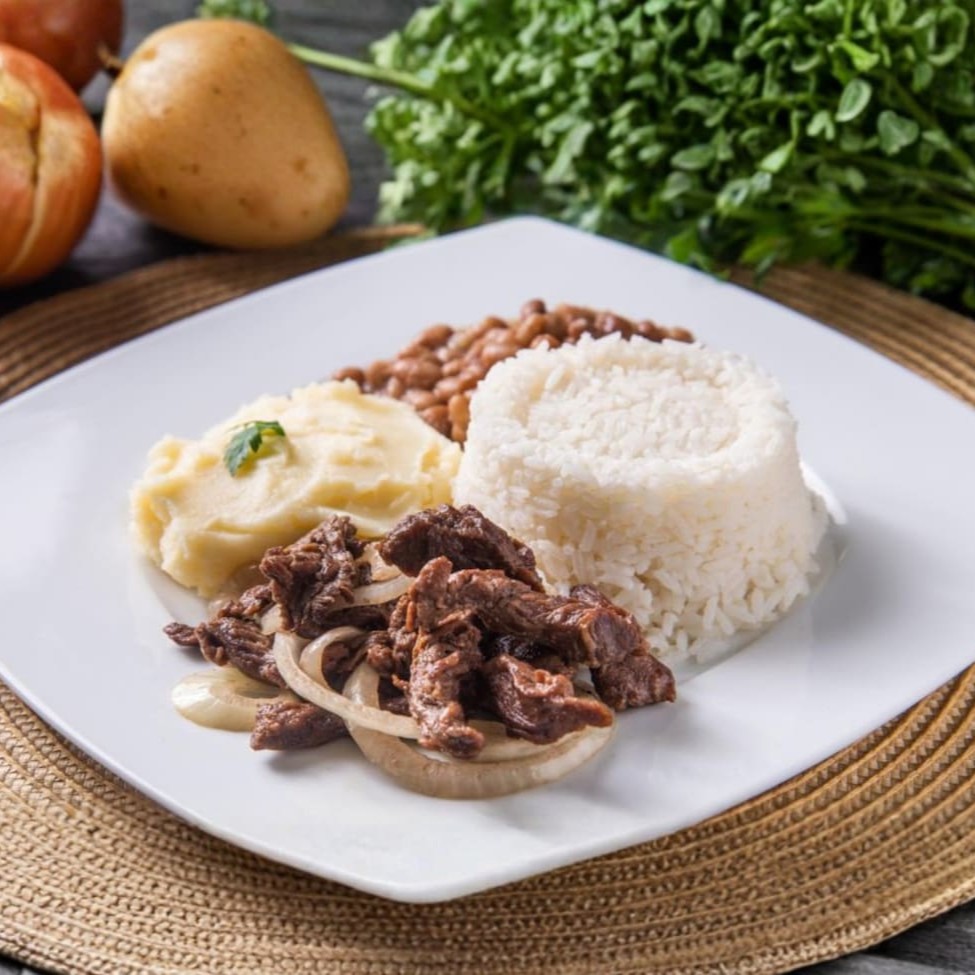 Bife Acebolado + Acompanhamentos - Marmita Completa 750g