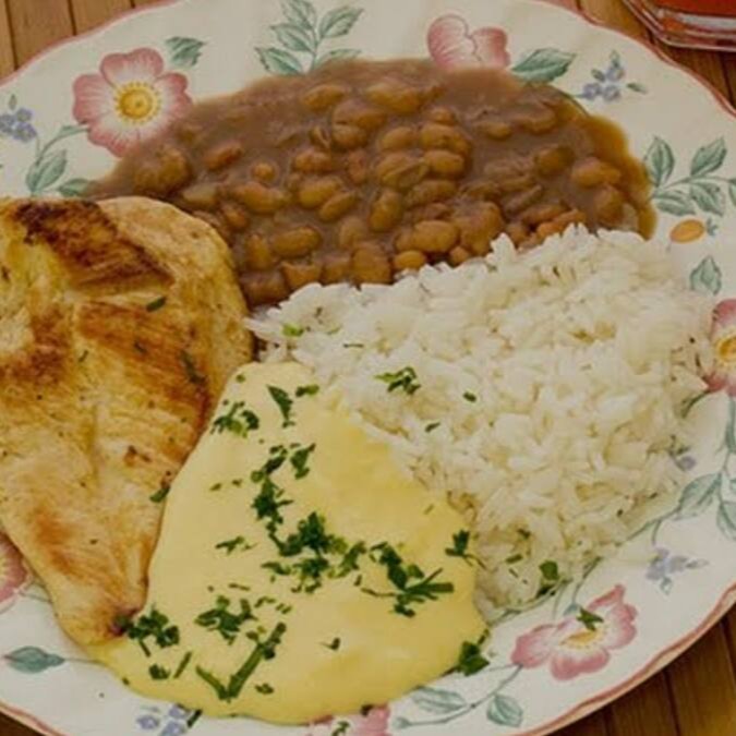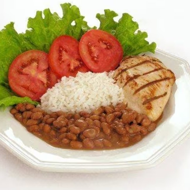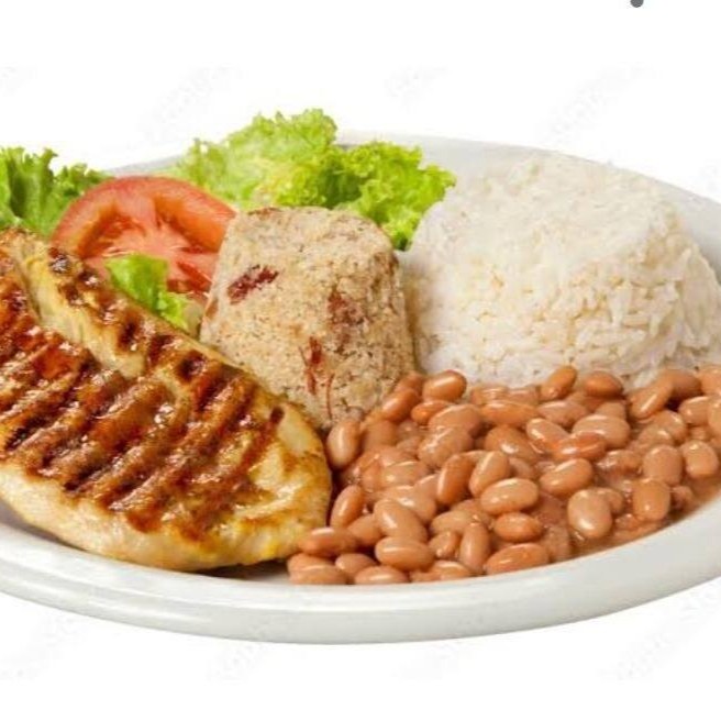 Também está incluso arroz branco e um delicioso feijão de caldo bem temperado temperado.