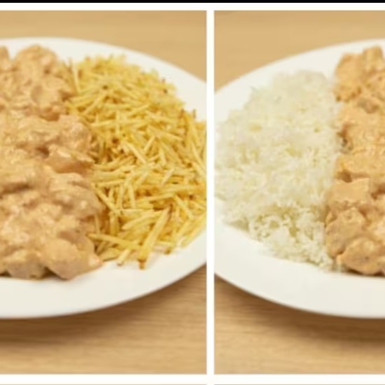 Strogonoff De Frango Com Arroz E Purê De Batata