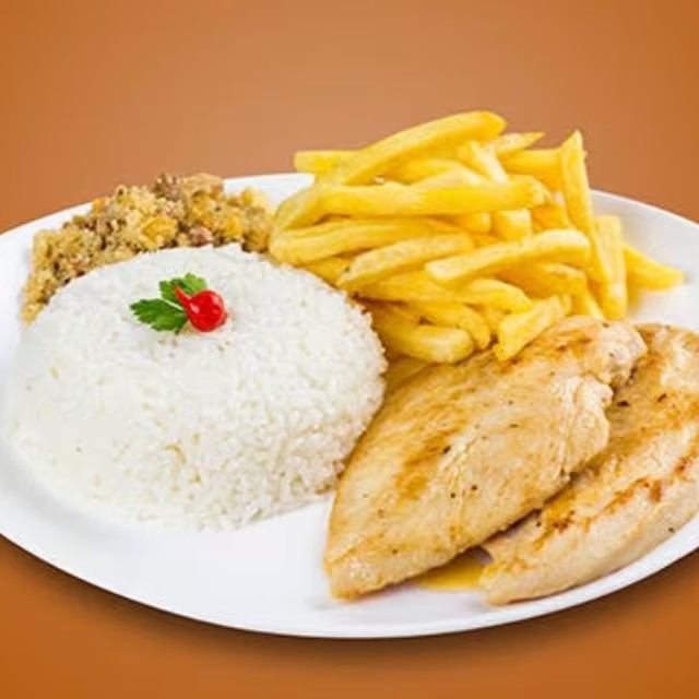 Filé De Frango Com Arroz, Feijão E Fritas