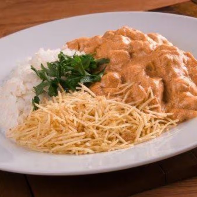 Strogonoff De Frango Com Arroz E Batata Palha