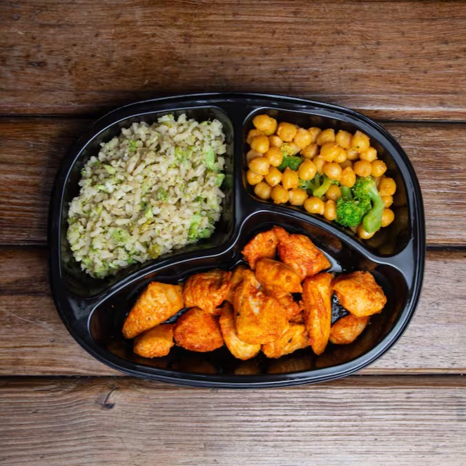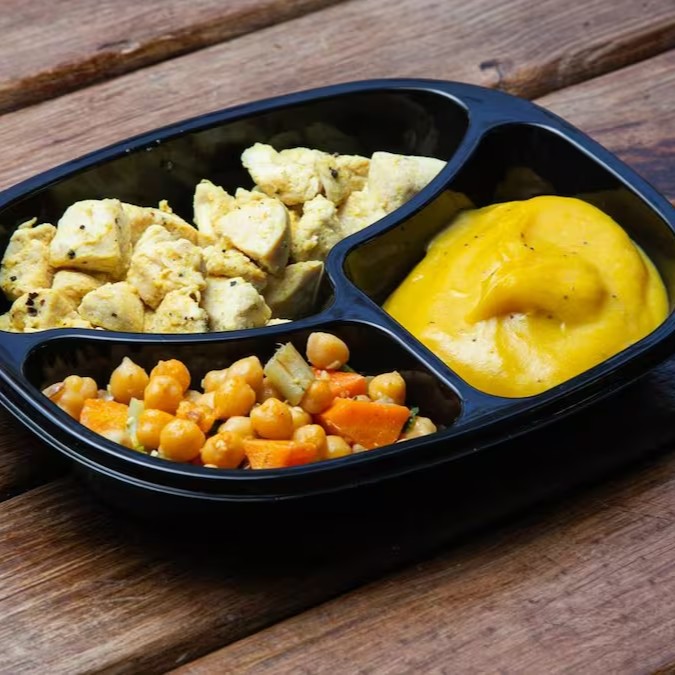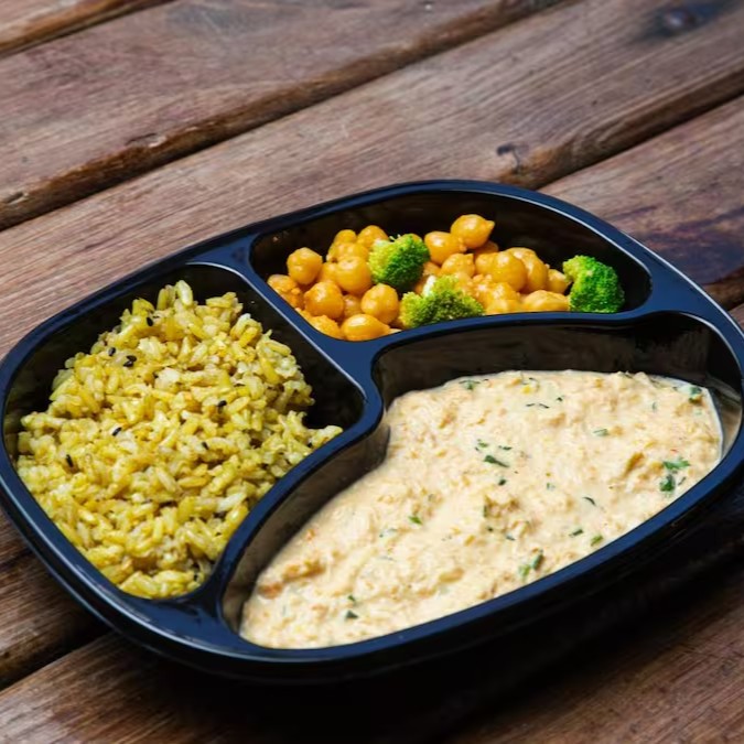 Delicie-se com nosso Fricassê de Frango Fit, cuidadosamente preparado com temperos naturais que realçam o sabor autêntico do prato. Acompanha um arroz integral leve e nutritivo, além de uma saborosa salada de grão de bico, enriquecida com legumes frescos e crocantes. Os itens são servidos separadamente, garantindo a preservação do sabor de cada componente. A porção possui de 300g a 400g, ideal para uma refeição completa e balanceada. Oferecemos a opção do prato pronto para consumo ou congelado, para que você possa desfrutar quando quiser deste prato saboroso e saudável.