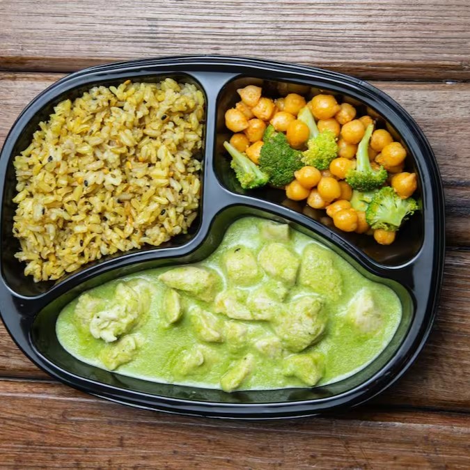 Marmita Frango Ao Creme De Espinafre, Arroz Integral Temperado E Salada De Legumes Copiar