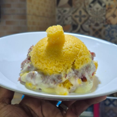 Cuscuz com Carne seca, queijos mussarela e coalho