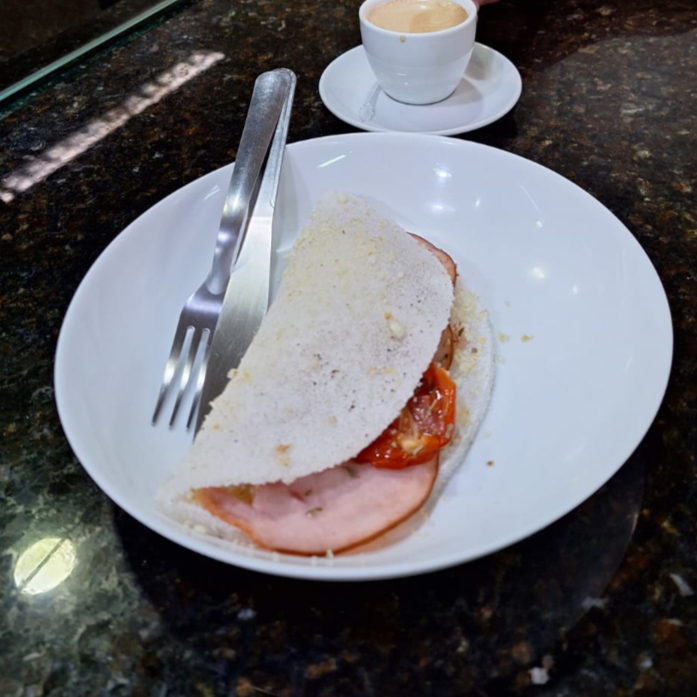 Tapioca de Queijo, tomate e manjericão