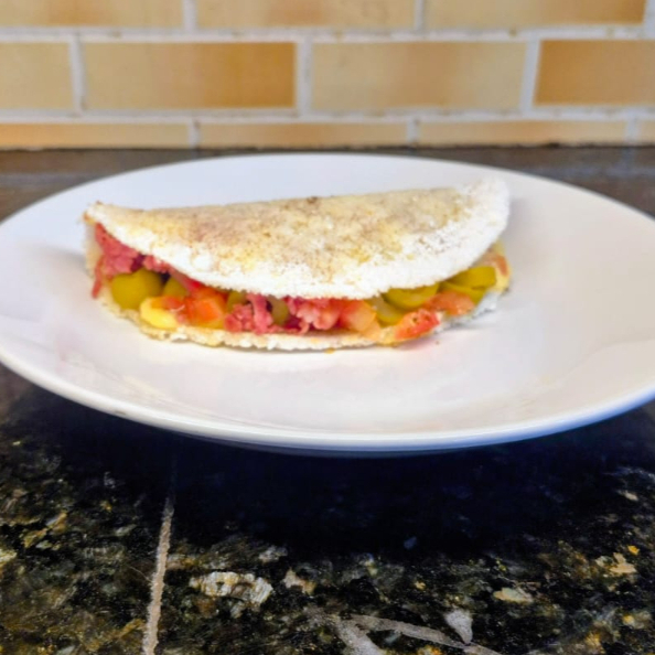 Tapioca de Calabresa, queijo e catupiry