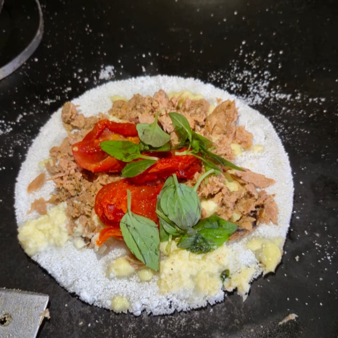 Meu Mar - Tapioca De Atum, Minas Frescal, Tomate E Azeitona