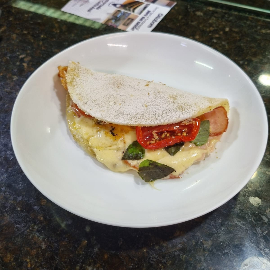 Crepe de Queijo, tomate e manjericão