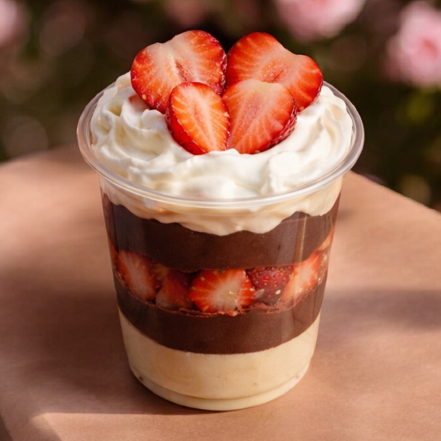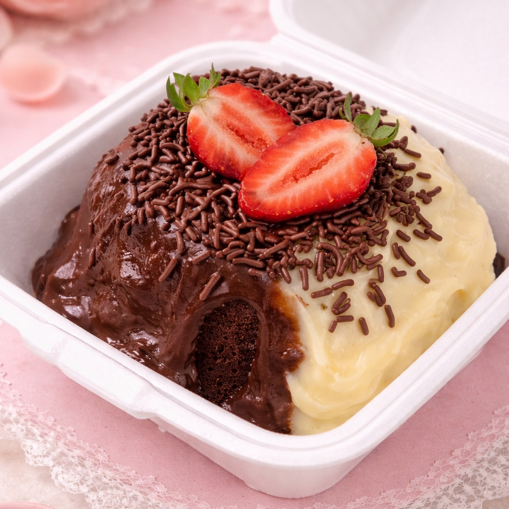Brigadeiro de Ninho + Morangos frescos + Brigadeiro 50% Cacau