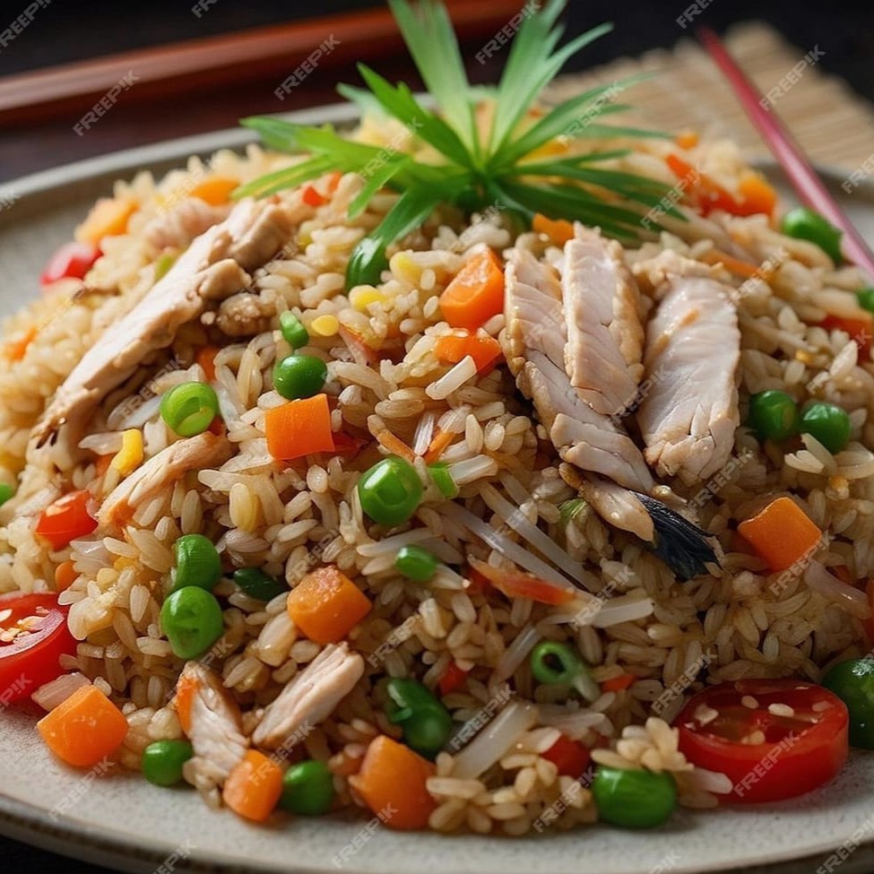 Delicioso Yakimeshi de filé de peito de frango em cubos, com um peso generoso de 500gr ! Nossa receita especial combina o arroz perfeitamente preparado para Yakimeshi com suculentos pedaços de frango. Acompanha uma seleção harmoniosa de legumes frescos, como repolho, brócolis, acelga e cenoura, que adicionam crocância e sabor ao prato. A finalização fica por conta do nosso molho especial da casa, que envolve e realça cada ingrediente. Uma autêntica experiência culinária chinesa que serve até 2 pessoas. Ideal para os amantes de sushi, temaki, sashimi, uramaki, missochiro, teriaki, tarê, shoyu, hossomaki, futomaki, niguiri, poke, yakisoba, macarrão na chapa, guioza, rolinho primavera, harumaki, arroz yakimeshi, arroz shop suey, bifu, soba, gukan, joy, barca de sushi, combinado de sushi, sushi gourmet e sushi artesanal.