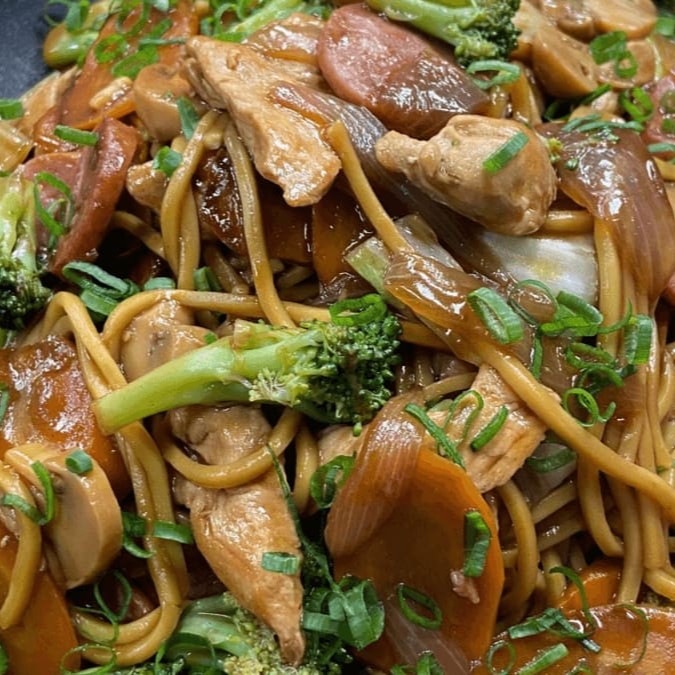 Delicioso Yakisoba de Frango com 1 quilo, uma porção generosa que serve perfeitamente duas pessoas. Elaborado com um macarrão especial para yakisoba, meticulosamente misturado com suculento frango, crocante repolho, nutritivo brócolis, fresca acelga e colorida cenoura. Para finalizar, é regado com nosso exclusivo e saboroso molho especial da casa. Uma autêntica experiência gastronômica japonesa que promete encantar os paladares mais exigentes. Uma opção perfeita para compartilhar um momento agradável à mesa. Este é o deleite perfeito para os amantes da culinária oriental, incluindo sushi, temaki, sashimi, uramaki, missochiro, teriaki, tarê, shoyu, hossomaki, futomaki, niguiri, poke, yakisoba, macarrão na chapa, guioza, rolinho primavera, harumaki, arroz yakimeshi, arroz shop suey, bifu, soba, gukan, joy, barca de sushi, combinado de sushi, sushi gourmet e sushi artesanal. Experimente e encante-se!