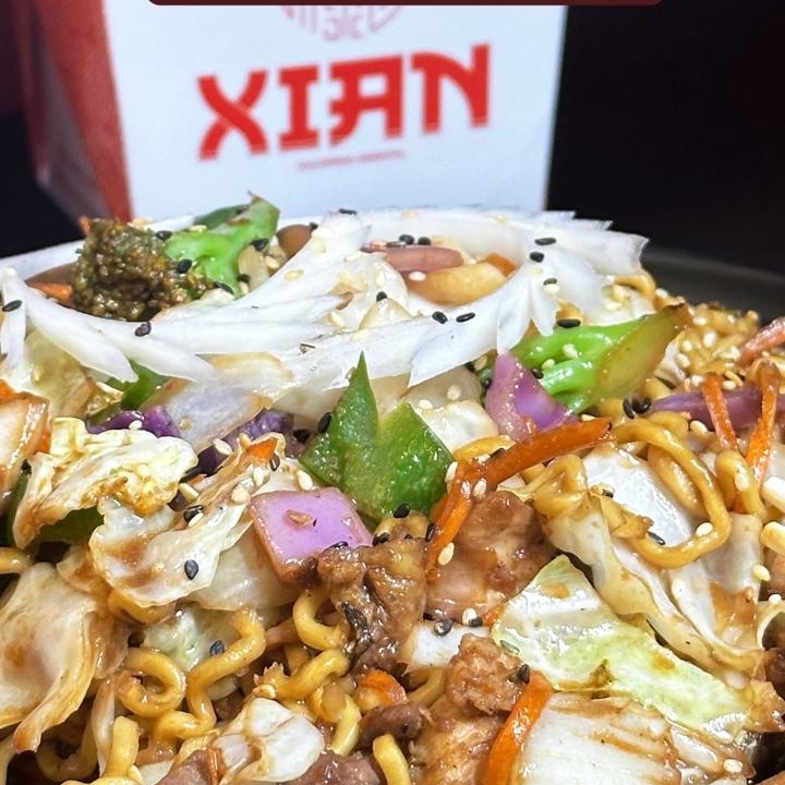 Delicie-se com nosso Yakisoba Misto (Carne e Frango) de 350 gr, um dos pratos mais vendidos do Xian. Este prato é uma sinfonia de sabores, onde a suculenta filé de carne em tiras e o tenro frango são habilmente combinados com o macarrão de yakisoba autêntico. Cada garfada traz um arco-íris de vegetais crocantes: cenoura vibrante, brócolis fresco, repolho verde e roxo e couve. Tudo isso é delicadamente envolto em nosso molho especial, uma receita secreta do chefe que dá um toque final inesquecível. Um prato que celebra a culinária oriental em sua plenitude.