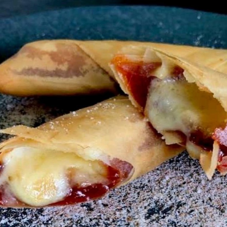 Massa de harumaki de queijo mussarela.
