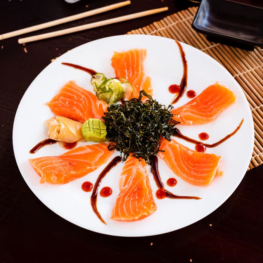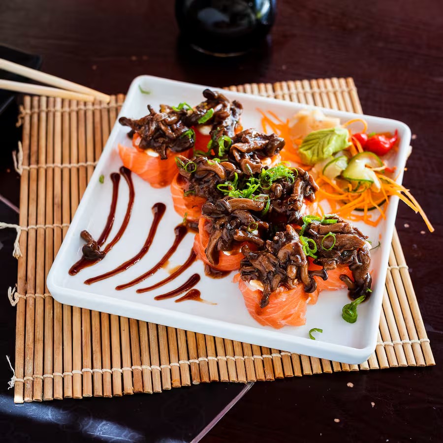 Maçaricado Salmão Cru E Shimeji
