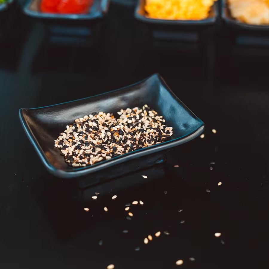 200g de salmão cobertos com gergelim e cebolinha ao molho do chef.