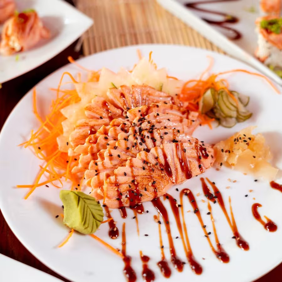 Maçaricado Salmão Cru E Camarão