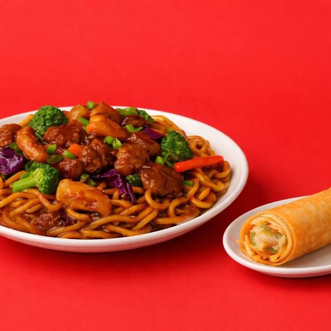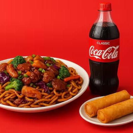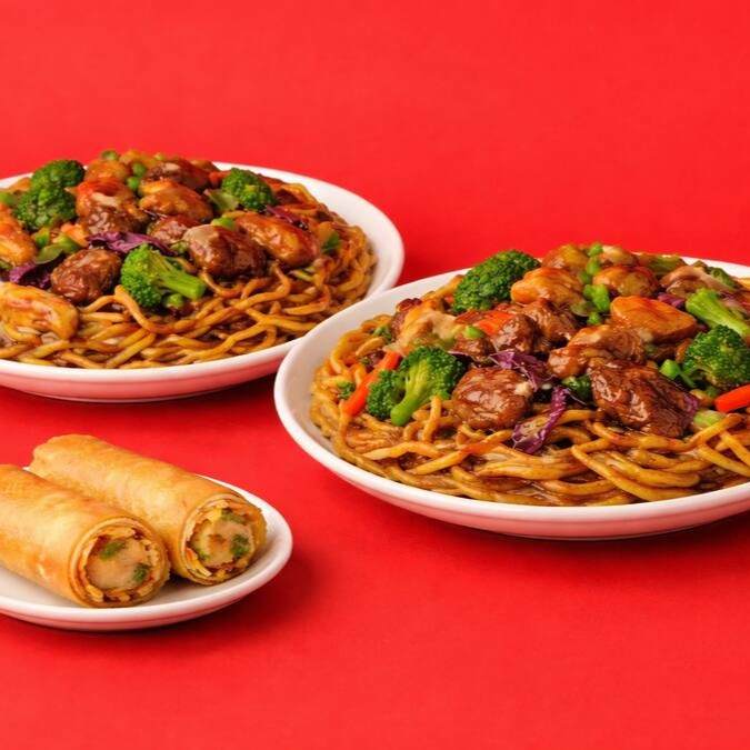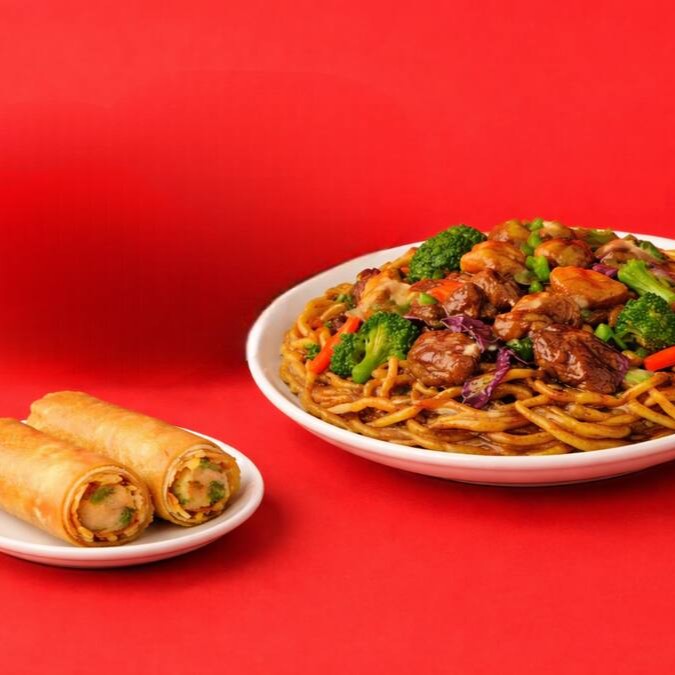 Perfeito para duas pessoas, este combo inclui Yakisoba de Carne de 1kg, Rolinho Primavera e um refrescante refrigerante de 1l. Compartilhe momentos deliciosos.