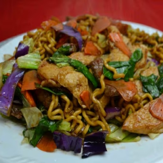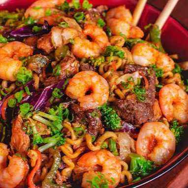 Yakisoba, carne, frango, camarão, legumes completo, massa, molhos especiais, uma especialidade da casa que encanta a todos.