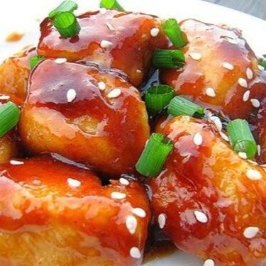 Peito de frango ao molho adocicado, finalizado com gergelim!