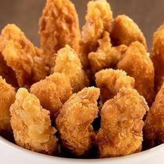 Tirinhas de peito de frango empanado na crocante farinha panko.