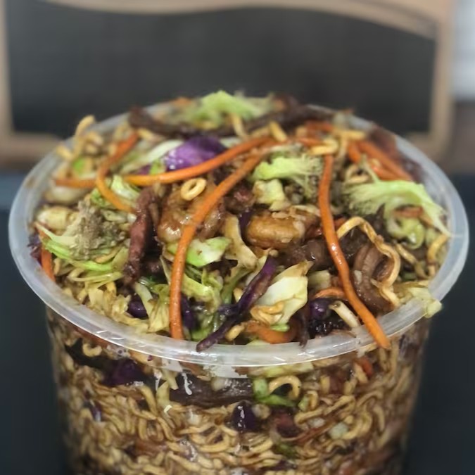 Delicie-se com nosso Yakissoba de Carne, uma porção generosa de 500g, perfeita para uma refeição individual. Este prato é uma combinação harmoniosa de macarrão oriental cuidadosamente cozido, carne suculenta e tenra, e legumes frescos e crocantes. Uma explosão de sabores que irá transportá-lo diretamente para a culinária asiática. Uma opção saudável e saborosa para o seu Dia!