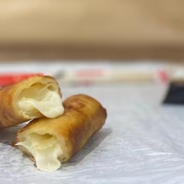 2 Rolinhos de Queijo – crocantes por fora, derretidos por dentro, tipo seu crush quando ouve um "eu te amo".