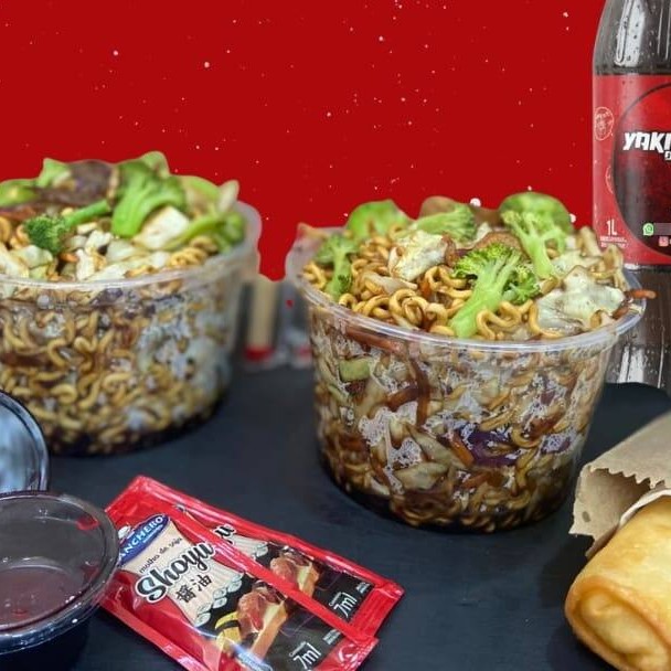 2 Yakissobas Tradicionais – macarrão bem feito, com carne, frango e legumes no molho especial que é segredo de estado (só a gente sabe).