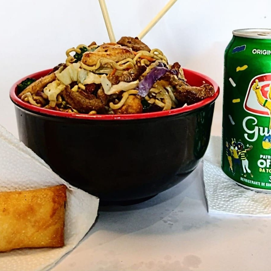 1 yakisoba 500g misto(carne + frango) + 1 rolinho primavera ou banana com doce de leite + 1 refrigerante lata **Não Fazemos Alterações**