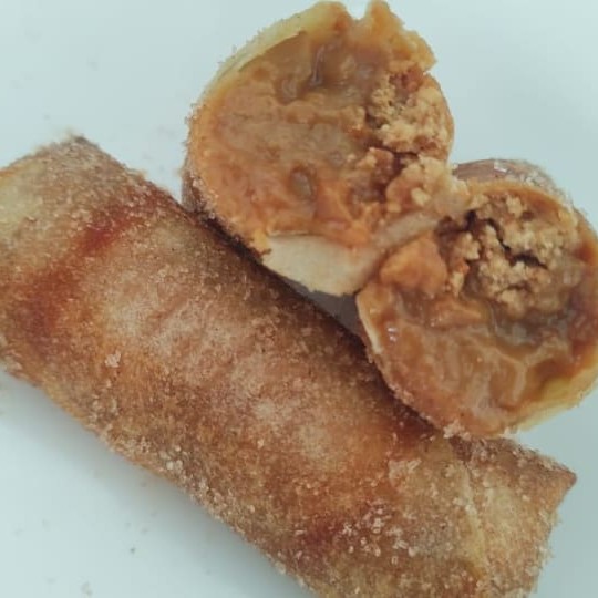 Rolinho De Doce De Leite Com Paçoca De Amendoim ,Coberto Com A Deliciosa Massa Harumaki.