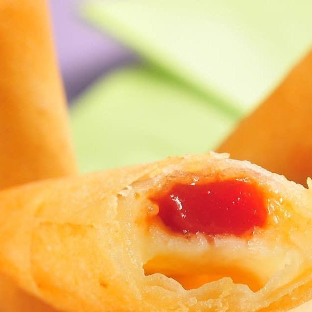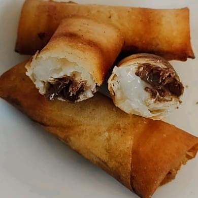 Delicioso recheio de côco com chocolate coberto pela crocante massa Harumaki.