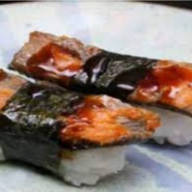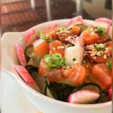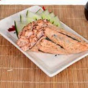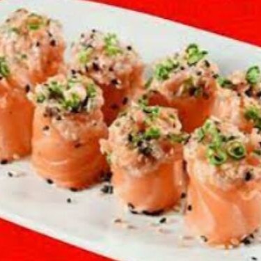 Lâmina de salmão,envolto com cubos de salmão sem arroz.