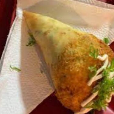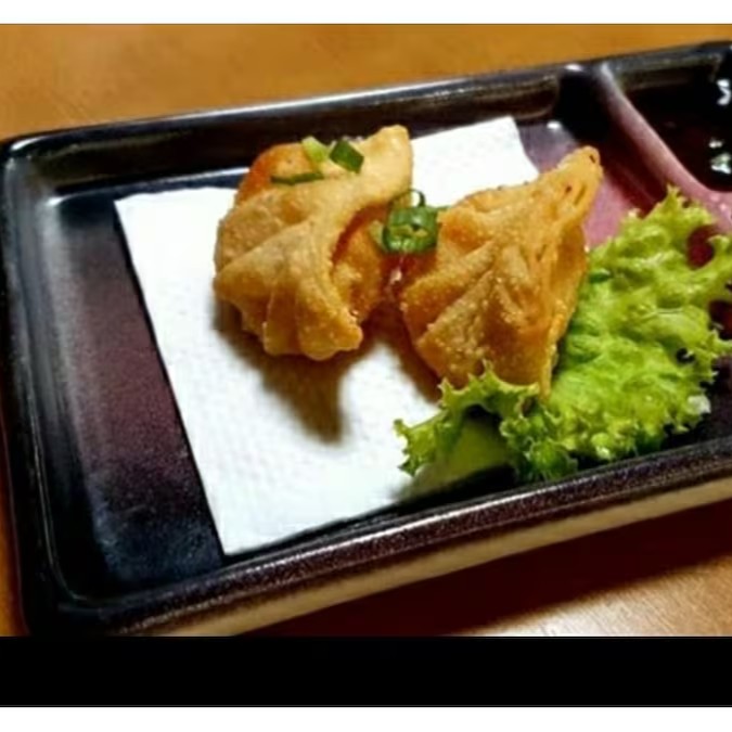 Temaki hot empanado e frito sem arroz com recheio de camarão.