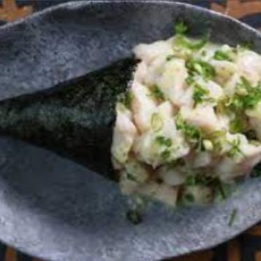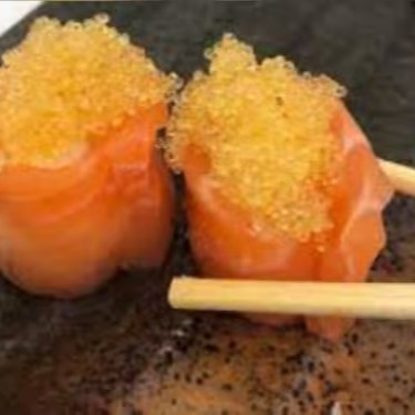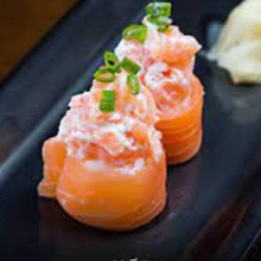 Lâmina do salmão,envolto com shimeji, cubos de salmão sem arroz. Com creme chesse e cebolinha