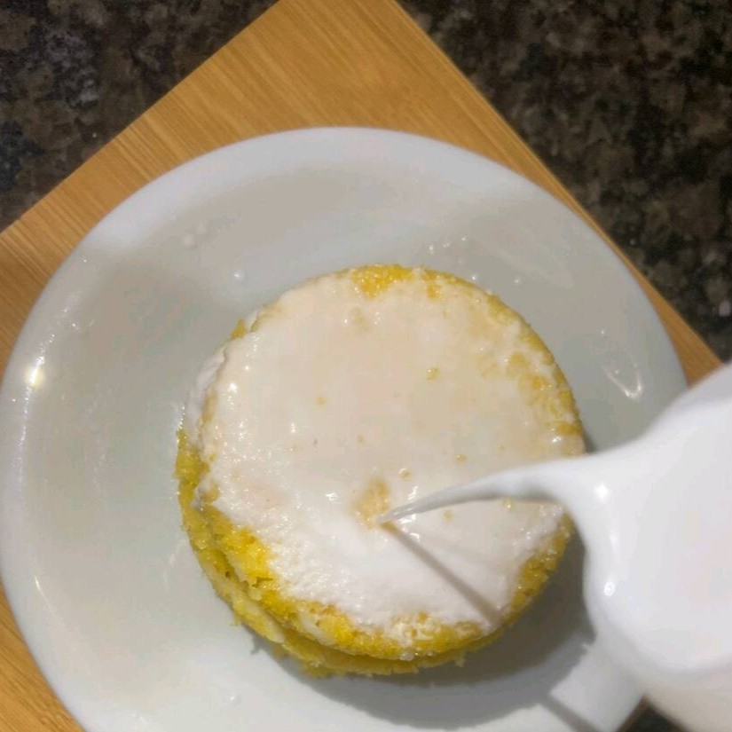 Cuscuz com 200 ml de leite de coco natural com açúcar sem açúcar .
