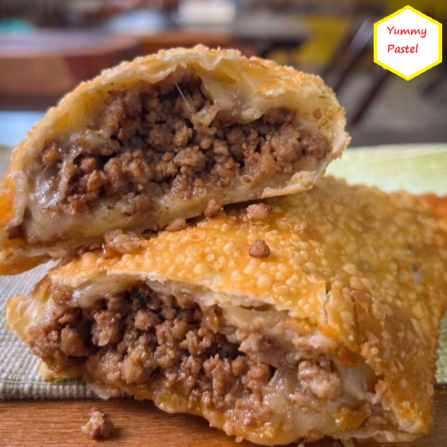 Carne moida temperada com queijo muçarela pouco recheio,Pastel crocante,sequinho e leve Ideal para petiscar ou acompanhar sua bebida favorita.