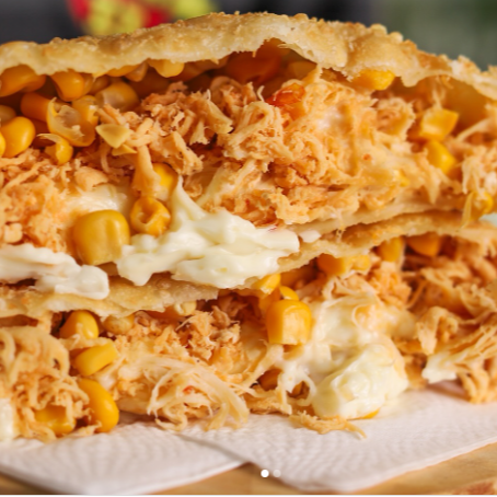 O trio perfeito! Nosso frango desfiado e temperadinho ganha a companhia generosa do legítimo Catupiry Original, garantindo uma cremosidade inigualável. O milho selecionado entra para trazer doçura e frescor a cada mordida.