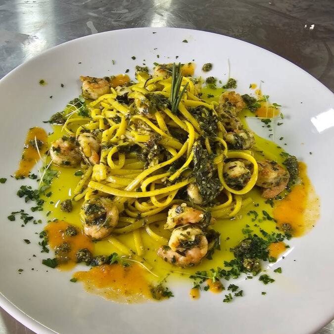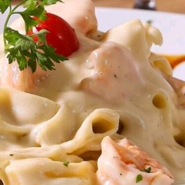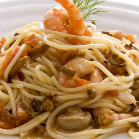 Delicioso Espaguete, camarão, creme de leite e funghi