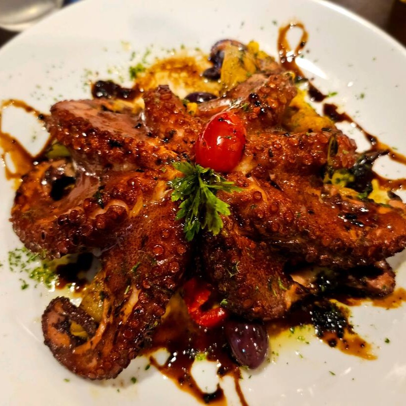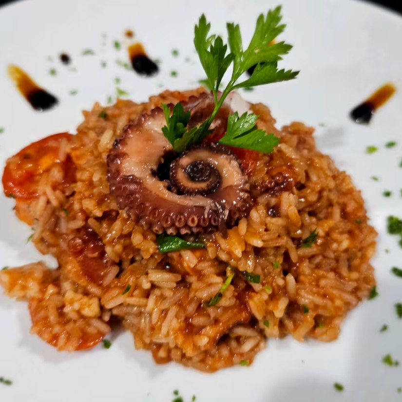 Arroz cozido no próprio caldo do polvo e delicadamente regado com azeite extra virgem.