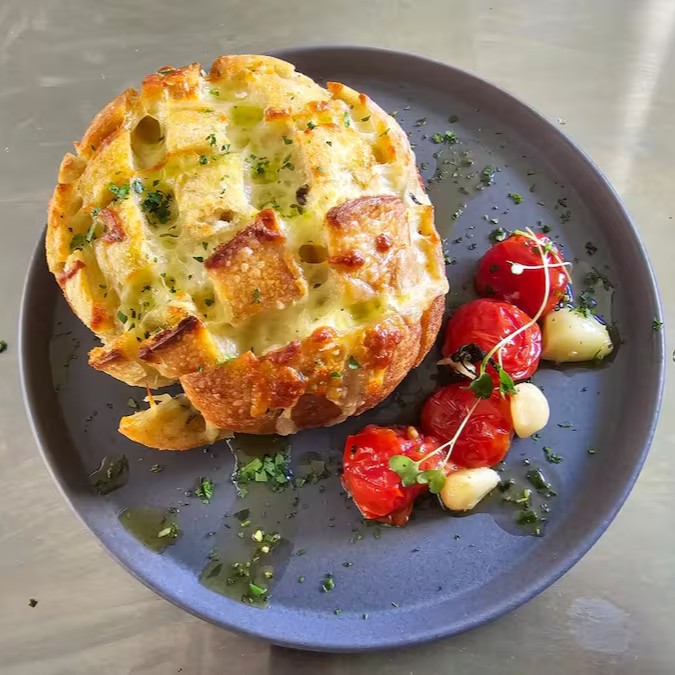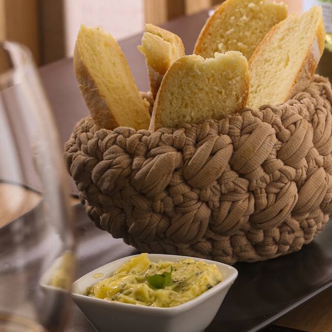 Cesta de pão artesanal, acompanhado de manteiga aromatizada