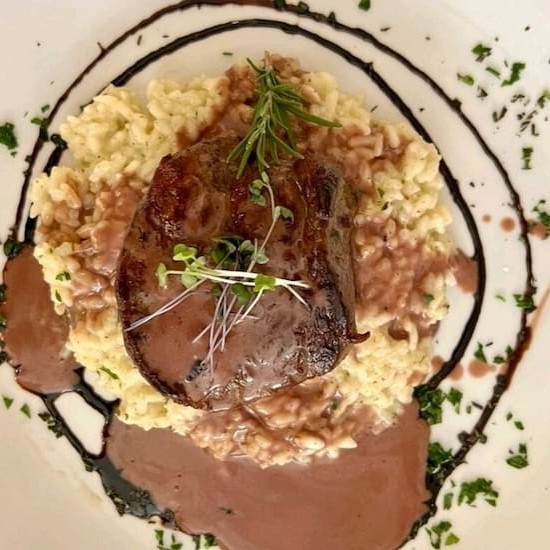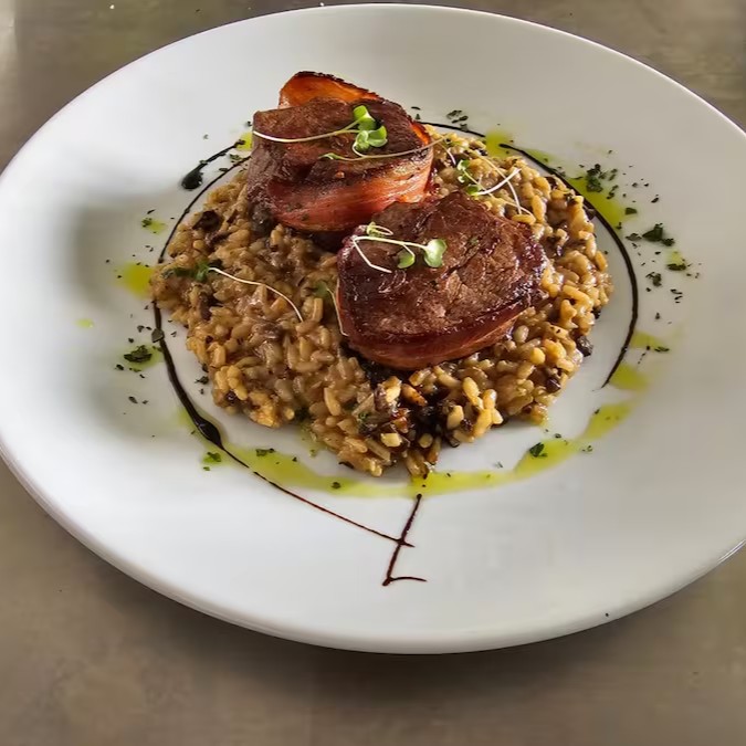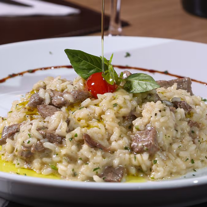 Arbório, filé mignon, gorgonzola, azeite aromatizado